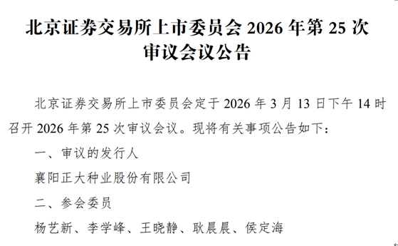 中国产经观察消息  2026年3月13日,北交所上市委员会将审议襄阳正大种业股份有限公司(以下简称“正大种业”)的首发申请。这家背靠泰国卜蜂集团的“育繁推一体化”种子企业,尽管在玉米种子领域深耕多年,但其IPO之路却因业绩波动、收入结构单一、经销模式不规范、无实际控制人、产能利用率低、外资身份限制等多重问题,笼罩在一片质疑声中。