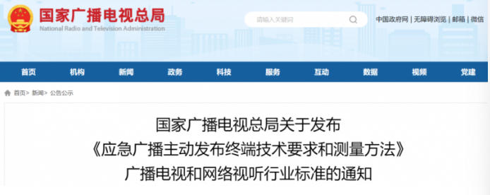 近期,国家广播电视总局发布了《应急广播主动发布终端技术要求和测量方法》广播电视和网络视听行业标准。此标准适用于应急广播主动发布终端的开发、生产、验收、运行维护和测量,并规定了应急广播主动发布终端的设备构成、技术功能、技术性能、接口和测量方法。数码视讯(股票代码:300079)参与了该项标准的编写。