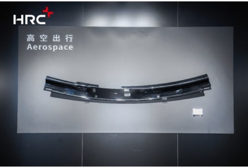 在商用大飞机领域,HRC也已成功打入全球航空制造供应链,成为空客、商飞等一流航空主机企业的合作伙伴。作为航空领域的创新成果,机舱门边梁采用高压树脂传递模塑成型工艺制备而成,具有孔隙率低、尺寸稳定性佳、精度高、一致性好的特点,生产节拍快至15分钟。这款集轻量化、高性能与大批量生产优势于一体的创新产品,完美契合现代民航制造业对“高效能、批量化”的核心诉求,是赋能航空轻量化的理想产品。