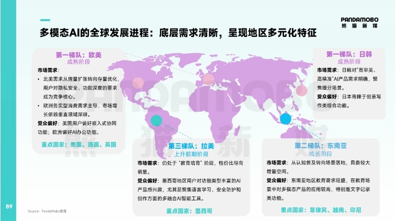 目前区域市场呈现“三梯队”格局:北美、欧洲作为成熟市场,用户对隐私安全和功能深度要求苛刻;同为成熟市场的日韩则青睐高审美、高精准产品;东南亚处于成长阶段,菲律宾、越南、印尼的教育场景需求旺盛——每个区域市场都有偏好市场亟待填补。但同时,合规、隐私安全与文化红线必须严守,涉及地缘政治、宗教冲突、社会敏感话题的素材必须一票否决,“智能向善”的理念将助力企业突破地缘壁垒。