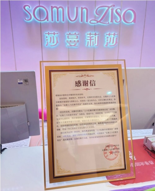 莎蔓莉莎收到了一封来自无锡市妇女联合会、无锡市三八红旗手联盟的感谢信,信中真挚的敬意与期许,不仅是对莎蔓莉莎公益行动的认可,更是对企业“以爱心做事业,以感恩的心做人”核心理念的共鸣。