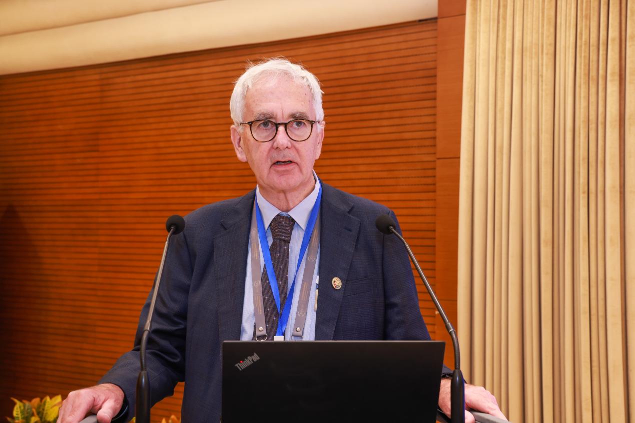 在题为“数字技术助力可持续发展目标”的主旨报告中,郭华东院士详尽阐述了推动可持续发展目标实现进程的数字科技系列平台及成果,其中包括如SDGSAT-1卫星及其开放研究计划,以及最新推出的一套由SDG中心主导的、基于超过5PB数据资源、专门面向可持续发展的“灵息·可持续发展目标大模型”人工智能系统。郭院士还介绍了在2025年世界科技与发展论坛开幕式上正式面向全球发布的《全球尺度可持续发展科学监测报告(2025)——地球大数据视角下的十年进展》。该报告系统回顾了过去十年间,数字技术在突破传统数据限制、利用地球大数据实现可对比监测成果方面的重要进展。他指出,目前由SDG中心牵头发起并获联合国教科文组织批准的“数字可持续发展国际大科学计划(DSP)”已得到来自32个国家的63家机构参与支持,并将继续在构建2030年后全球可持续发展愿景中发挥引领作用。