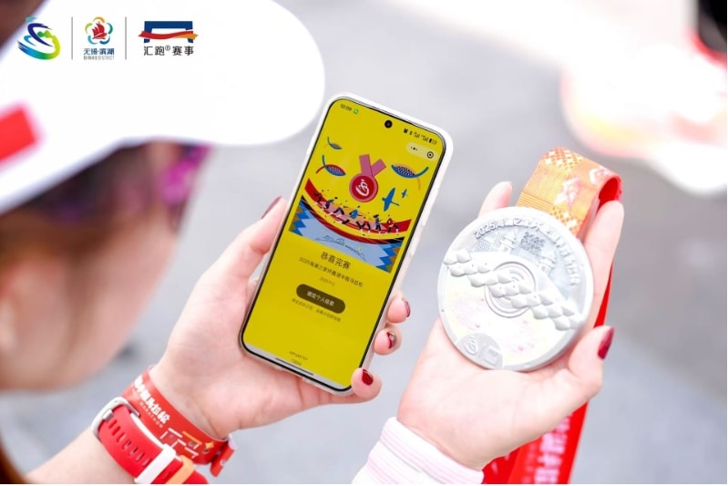 作为世界田联标牌赛事,蠡湖半马始终坚持高标准办赛。丰富的完赛物资将礼遇所有完成挑战的跑者。完赛奖牌尽显江南温婉,镀彩工艺呈现的粼粼波光,似晴空下的水清岸阔,又如夕照中的斑斓光影,奖牌背面,三鱼首尾相衔构成抽象化的循环符号不同形象的跑者在环形跑道上奋力前行,既象征着过去、现在与未来亦隐喻着马拉松运动中不可或缺的耐力、速度和信念。特别的是,今年的奖牌在绶带靠近奖牌处设置了NFC感应区,完赛选手领取到奖牌后将手机贴近感应区绑定身份信息,即可弹出个人完赛数据。升级为全棉材质的完赛毛巾,是蠡湖半马在终点为所有选手准备的温暖迎接。贴心舒适的完赛拖鞋,在赛后释放双脚压力。此外,由蠡湖半马主视觉延展设计的经典空顶帽,内置导汗条,兼具实用性和纪念意义,期待它能够一直陪伴着蠡湖半马的参赛选手,见证每一次为热爱的奔跑!