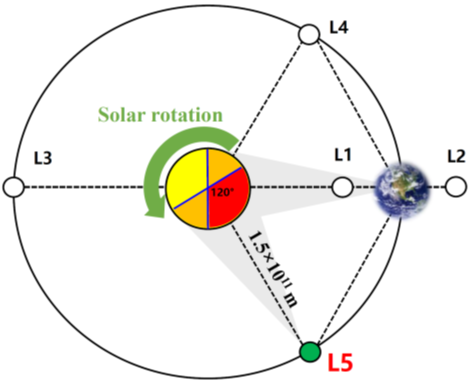 “羲和二号”计划前往的日地L5点位置示意图。(南京大学供图)