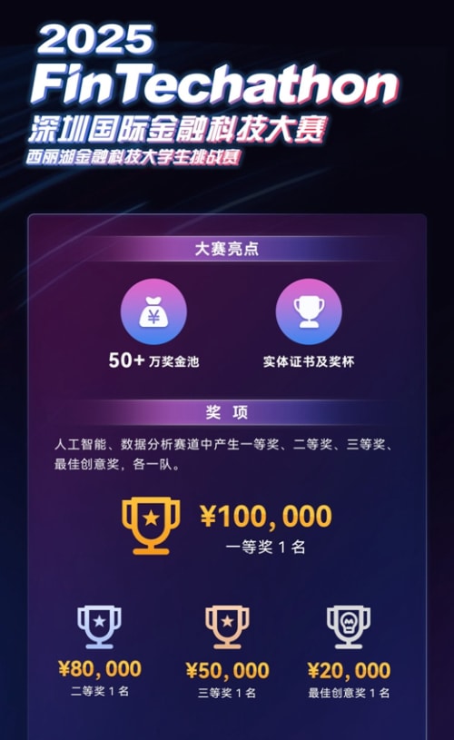 为了满足金融科技产业技术创新及人才需求,更好地推动金融科技产业发展,由深圳市地方金融管理局进行战略指导,深大微众金融科技学院、微众银行、InfoQ 极客传媒、狗熊会等多方联合举办的“2025 深圳国际金融科技大赛(FinTechathon)——西丽湖金融科技大学生挑战赛”(下文称“大赛”)于9月26日正式开赛。